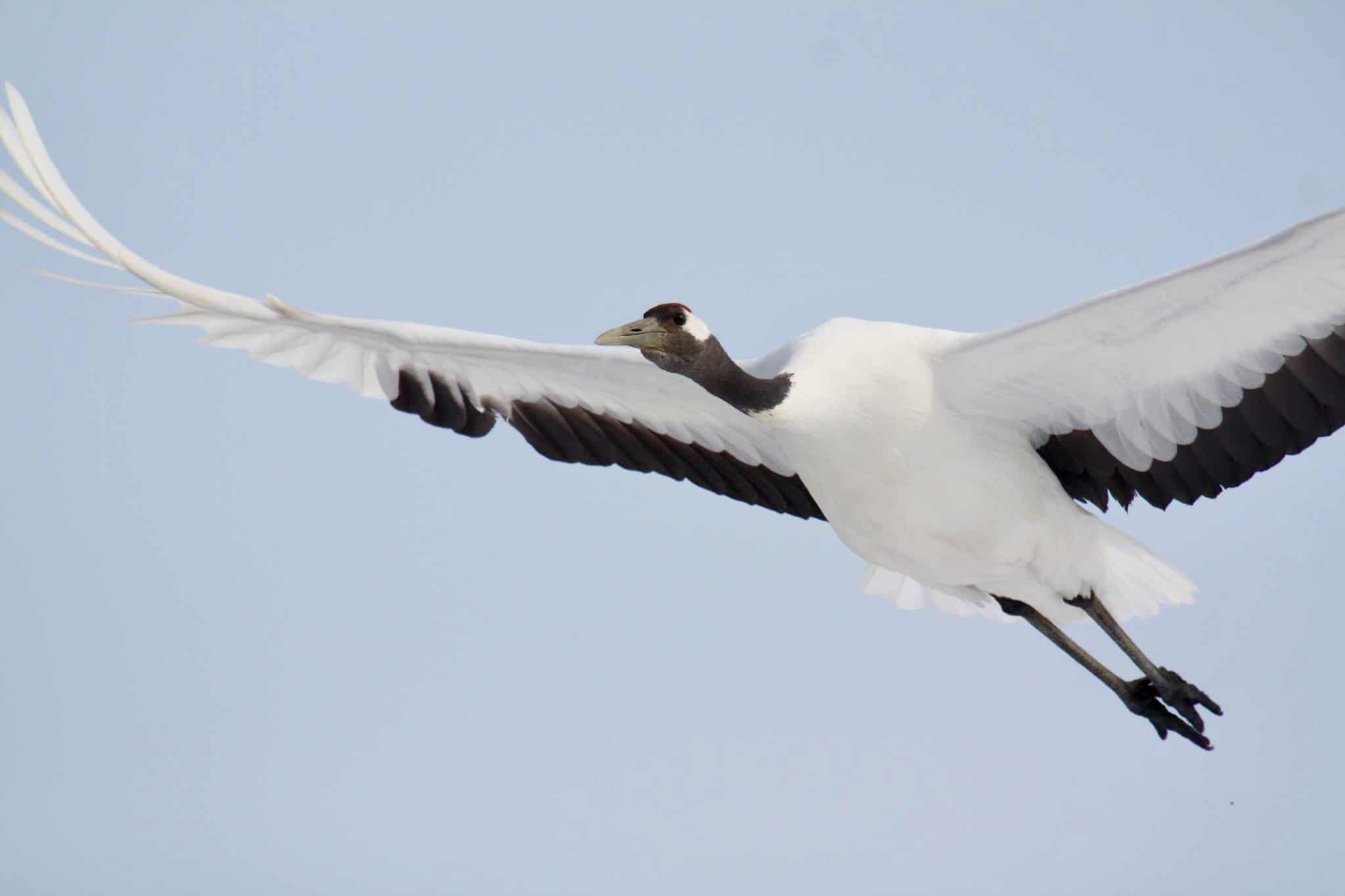Second in number is the taller red-faced, white-naped crane. About 20% of its population, 1,000-2,000, winter in Izumi each year.